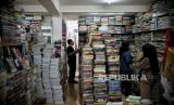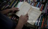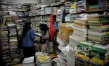 Pembeli mencari sejumlah buku di Toko Buku Restu, Jalan Kwitang Raya, Jakarta Pusat, Selasa (31/1/2023). Toko Buku Restu merupakan salah satu toko buku legendaris di Jakarta yang sudah ada sejak tahun 1970-an. Toko buku tersebut menyediakan ribuan koleksi buku dari berbagai jenis genre seperti novel, pendidikan, agama, hukum, sejarah dan cerpen. Rata-rata buku yang dijual di tempat tersebut merupakan buku bekas, yang dijual mulai dari harga Rp10 ribu hingga jutaan rupiah tergantung keaslian dan tahun terbit. Menurut pedagang buku Subhil (53) mengatakan, ditengah kemajuan teknologi, yang menyebabkan pergeseran prilaku pembeli dari offline menjadi online tidak membuat ia patah arang, menurutnya pembeli yang hendak ke toko buku rata-rata merupakan langganan, pelajar serta sejumlah kolektor buku-buku vintage. Meski demikian, beberapa pedagang juga menyediakan layanan online dengan menjual beberapa koleksinya di akun media sosial pribadinya. (FOTO : Republika/Thoudy Badai)