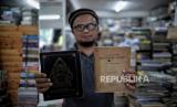 Pedagang buku Subhil (53) menunjukan koleksi buku vintage di Toko Buku Restu, Jalan Kwitang Raya, Jakarta Pusat, Selasa (31/1/2023). Toko Buku Restu merupakan salah satu toko buku legendaris di Jakarta yang sudah ada sejak tahun 1970-an. Toko buku tersebut menyediakan ribuan koleksi buku dari berbagai jenis genre seperti novel, pendidikan, agama, hukum, sejarah dan cerpen. Rata-rata buku yang dijual di tempat tersebut merupakan buku bekas, yang dijual mulai dari harga Rp10 ribu hingga jutaan rupiah tergantung keaslian dan tahun terbit. Menurut pedagang buku Subhil (53) mengatakan, ditengah kemajuan teknologi, yang menyebabkan pergeseran prilaku pembeli dari offline menjadi online tidak membuat ia patah arang, menurutnya pembeli yang hendak ke toko buku rata-rata merupakan langganan, pelajar serta sejumlah kolektor buku-buku vintage. Meski demikian, beberapa pedagang juga menyediakan layanan online dengan menjual beberapa koleksinya di akun media sosial pribadinya. (FOTO : Republika/Thoudy Badai)