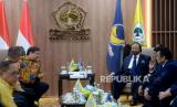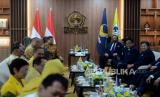 REPUBLIKA.CO.ID, SLIPI -- Pertemuan Ketua Umum Partai Golkar Airlangga Hartarto bersama Ketua Umum Partai Nasdem Surya Paloh di Kantor DPP Partai Golkar, Jakarta, Rabu (1/2/2023).