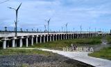 Jembatan Kretek II saat uji coba pembukaan di Bantul, Yogyakarta, Rabu (1/2/2023). Pemerintah melalui Direktorat Jenderal Bina Marga dan Dinas Perhubungan Kabupaten Bantul melakukan uji coba pembukaan Jembatan Kretek II sebagai penghubung kawasan wisata di Jalur Jalan Lintas Selatan (JJLS) Jawa. Jembatan dengan panjang 556,6 meter ini memiliki empat lajur jalan dan satu lajur untuk pejalan kaki. Jembatan ini menghubungkan kawasan wisata Pantai Parangtritis dan Pantai Samas, Bantul. (FOTO : Republika/Wihdan Hidayat)