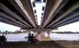 Bagian bawah Jembatan Kretek II saat uji coba pembukaan di Bantul, Yogyakarta, Rabu (1/2/2023). Pemerintah melalui Direktorat Jenderal Bina Marga dan Dinas Perhubungan Kabupaten Bantul melakukan uji coba pembukaan Jembatan Kretek II sebagai penghubung kawasan wisata di Jalur Jalan Lintas Selatan (JJLS) Jawa. Jembatan dengan panjang 556,6 meter ini memiliki empat lajur jalan dan satu lajur untuk pejalan kaki. Jembatan ini menghubungkan kawasan wisata Pantai Parangtritis dan Pantai Samas, Bantul. (FOTO : Republika/Wihdan Hidayat)