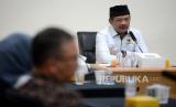 Ketua Baznas RI KH Noor Achmad memberikan sambutan didampingi oleh Kepala Badan Penyelenggara Jaminan Produk Halal (BPJPH) Kemenag Muhammad Aqil Irham pada acara simbolisasi penyerahan sertifikat halal UMKM binaan Baznas RI di Jakarta, Rabu (1/2/2023). Simbolisasi penyerahan sertifikat halal ini sebagai awal untuk mendorong serifikasi halal UMKM binaan Baznas dan LAZ di seluruh Idonesia. Acara penyerahan sertifikat halal tersebut dihadiri oleh 20 UMKM binaan Baznas RI yang bergeak di berbagai jenis usaha. (FOTO : Republika/Prayogi.)
