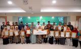 Ketua Baznas RI KH Noor Achmad (tengah), Kepala Badan Penyelenggara Jaminan Produk Halal (BPJPH) Kemenag Muhammad Aqil Irham (kiri), dan Wakil Ketua Baznas RI Mokhamad Mahdum (kanan) serta para mitra umkm binaan Baznas berfoto usai simbolisasi penyerahan sertifikat halal UMKM binaan Baznas RI di Jakarta, Rabu (1/2/2023). Simbolisasi penyerahan sertifikat halal ini sebagai awal untuk mendorong serifikasi halal UMKM binaan Baznas dan LAZ di seluruh Idonesia. Acara penyerahan sertifikat halal tersebut dihadiri oleh 20 UMKM binaan Baznas RI yang bergeak di berbagai jenis usaha. (FOTO : Republika/Prayogi.)