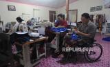 REPUBLIKA.CO.ID,BOYOLALI -- Warga difabel mengerjakan pembuatan rompi dan baju di sanggar kelompok Kresna Patra, Klewor, Kemusu, Boyolali, Jawa Tengah, Rabu (1/2/2023).