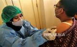 REPUBLIKA.CO.ID, YOGYAKARTA -- Vaksinasi Covid-19 penguat kedua di Bangsal Wiyata Praja, Komplek Kepatihan, Yogyakarta, Kamis (2/2/2023).