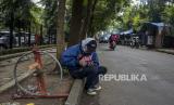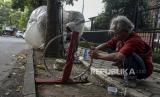 Seorang Penyandang Masalah Kesejahteraan Sosial (PMKS) Bayu Aji (50) memperbaiki alat pengisi daya baterai buatannya di Jalan Japati, Coblong, Kota Bandung, Provinsi Jawa Barat, Kamis (2/2/2023).  (FOTO : ABDAN SYAKURA/REPUBLIKA)