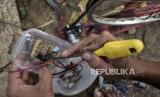 REPUBLIKA.CO.ID,  COBLONG  --  Alat pengisi daya baterai buatan Penyandang Masalah Kesejahteraan Sosial (PMKS) Bayu Aji (50) di Jalan Japati, Coblong, Kota Bandung, Provinsi Jawa Barat, Kamis (2/2/2023).