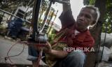 rai buatannya di Jalan Seorang Penyandang Masalah Kesejahteraan Sosial (PMKS) Bayu Aji (50) mengoperasikan alat pengisi daya bateJapati, Coblong, Kota Bandung, Provinsi Jawa Barat, Kamis (2/2/2023).  (FOTO : ABDAN SYAKURA/REPUBLIKA)