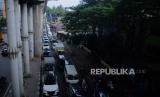 Sejumlah kendaraan terjebak kemacetan di Jalan Ciledug Raya, Cipulir, Kebayoran Lama, Jakarta Selatan. Kamis (2/2/2023). Pengerjaan proyek gorong-gorong yang menghabiskan setengah badan jalan tersebut mengakibatkan penyempitan jalan sehingga menimbulkan kemacetan sepanjang hari dari simpang Seskoal hingga melewati Pasar Cipulir. (FOTO : Republika/Putra M. Akbar)