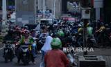 Arus lalu lintas yang tersendat akibat pengendara yang melawan arah untuk menghindari kemacetan di Jalan Ciledug Raya, Cipulir, Kebayoran Lama, Jakarta Selatan. Kamis (2/2/2023). Pengerjaan proyek gorong-gorong yang menghabiskan setengah badan jalan tersebut mengakibatkan penyempitan jalan sehingga menimbulkan kemacetan sepanjang hari dari simpang Seskoal hingga melewati Pasar Cipulir. (FOTO : Republika/Putra M. Akbar)