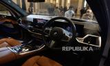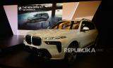 Mobil BMW X7 terbaru ditampilkan saat peluncuran Luxury Sport Activity Vehicle New BMW X7 di Jakarta, Kamis (2/2/2023). New BMW X7 hadir dengan berbagai peningkatan serta kombinasi dari tampilan ekslusif, kedinamisan, kelapangan kabin mewah, dan keserbagunaan yang terdepan di kelasnya. (FOTO : Republika/Edwin Dwi Putranto)