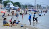 REPUBLIKA.CO.ID,JAKARTA -- Pengunjung berwisata di Pantai Lagoon, Jakarta, Jumat (3/2/2023).