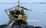 Pengunjung turun dari kapal saat wisata di Pantai Lagoon, Jakarta, Jumat (3/2/2023). Manajemen Taman Impian Jaya Ancol membagikan 20.000 tiket gratis untuk berwisata di kawasan Ancol dalam rangka memeriahkan bulan kasih sayang. (FOTO : Republika/Putra M. Akbar)