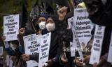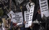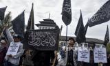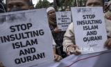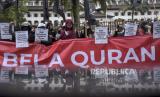 Massa dari Forum Ulama dan Tokoh Jawa Barat melakukan Aksi Umat Islam Jawa Barat Bela Alquran di depan Gedung Sate, Jalan Diponegoro, Kota Bandung, Provinsi Jawa Barat, Jumat (3/2/2023). Dalam aksi tersebut mereka mengutuk keras pembakaran Alquran di sejumlah negara dan menuntut hukuman mati bagi pelaku pembakaran Alquran, serta menyerukan seluruh umat dan penguasa muslim untuk memuliakan Alquran. (FOTO : ABDAN SYAKURA/REPUBLIKA)