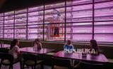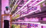 Petani melakukan perawatan tanaman di ruang penyemaian Semaii di sebuah kafe resto di kawasan Alam Sutera, Tangerang Selatan, Banten, Jumat (3/2/2023). Pertanian dengan konsep tertutup atau Controlled Environment Agriculture (CEA) tersebut menanam hingga 20 jenis tanaman yang dipasarkan ke berbagai restoran di Indonesia seperti Arugula, Swiss Chards, Chervil, Viola, Red Veined Sorrel, dan menjadi daya tarik tersendiri bagi pengunjung kafe tersebut. . (FOTO : ANTARA FOTO/Fauzan)
