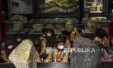 Sejumlah pelajar mencatat benda koleksi museum di Museum Geologi Bandung, Jalan Diponegoro, Kota Bandung, Provinsi Jawa Barat, Sabtu (4/2/2023). Museum Geologi Bandung yang memiliki berbagai koleksi fosil purba dan bebatuan, serta diorama sejarah terciptanya planet bumi tersebut ramai dikunjungi oleh wisatawan baik dari dalam maupun luar Kota Bandung pada akhir pekan. Berdasarkan data dari Badan Geologi Kementerian Energi dan Sumber Daya Mineral (ESDM) jumlah kunjungan ke Museum Geologi Bandung sepanjang tahun 2022 mencapai 326.356 pengunjung. (FOTO : ABDAN SYAKURA/REPUBLIKA)