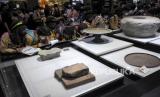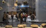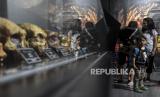 Sejumlah pengunjung melihat benda koleksi museum di Museum Geologi Bandung, Jalan Diponegoro, Kota Bandung, Provinsi Jawa Barat, Sabtu (4/2/2023). Museum Geologi Bandung yang memiliki berbagai koleksi fosil purba dan bebatuan, serta diorama sejarah terciptanya planet bumi tersebut ramai dikunjungi oleh wisatawan baik dari dalam maupun luar Kota Bandung pada akhir pekan. Berdasarkan data dari Badan Geologi Kementerian Energi dan Sumber Daya Mineral (ESDM) jumlah kunjungan ke Museum Geologi Bandung sepanjang tahun 2022 mencapai 326.356 pengunjung. (FOTO : ABDAN SYAKURA/REPUBLIKA)