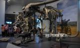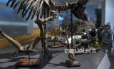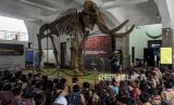 Sejumlah pelajar melihat kerangka hewan purba di Museum Geologi Bandung, Jalan Diponegoro, Kota Bandung, Provinsi Jawa Barat, Sabtu (4/2/2023). Museum Geologi Bandung yang memiliki berbagai koleksi fosil purba dan bebatuan, serta diorama sejarah terciptanya planet bumi tersebut ramai dikunjungi oleh wisatawan baik dari dalam maupun luar Kota Bandung pada akhir pekan. Berdasarkan data dari Badan Geologi Kementerian Energi dan Sumber Daya Mineral (ESDM) jumlah kunjungan ke Museum Geologi Bandung sepanjang tahun 2022 mencapai 326.356 pengunjung. (FOTO : ABDAN SYAKURA/REPUBLIKA)