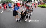 REPUBLIKA.CO.ID, SOLO -- Pelajar memunguti sampah yang berserakan saat kegiatan Hari Bebas Kendaraan Bermotor atau Car Free Day (CFD) di Solo, Jawa Tengah, Ahad (5/2/2023).