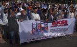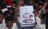 REPUBLIKA.CO.ID, SERANG -- Forum Persaudaraan Warga Banten (FPWB) berunjuk rasa memprotes pembakaran Alquran oleh politikus Swedia Rasmus Paludan, di halaman Mesjid Atsauroh Serang, Banten, Jumat (3/2/2023).