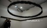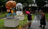 Pengunjung melihat karya seni yang ditampilkan pada pameran Art Jakarta Gardens 2023 di Hutan Kota Plataran GBK, Jakarta, Selasa (7/2/2023). (FOTO : Republika/Putra M. Akbar)