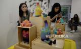 Pengunjung melihat karya seni yang ditampilkan pada pameran Art Jakarta Gardens 2023 di Hutan Kota Plataran GBK, Jakarta, Selasa (7/2/2023).  (FOTO : Republika/Putra M. Akbar)