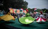 Anggota Fatayat NU menyelesaikan pemecahan rekor muri bergambarkan lima tokoh Nahdlatul Ulama menggunakan kertas berisi harapan dan doa sari jamaah sebanyak 26.000 kertas saat acara Resepsi Puncak Satu Abad NU di halaman Stadion Gelora Delta Sidoarjo, Jawa Timur, Selasa (7/8/2023). (FOTO : Republika/Thoudy Badai)