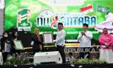 Jubir Panitia Respesi Satu Abad NU Rahmat Hidayat Pulungan (ketiga kanan) menerima penghargaan rekor muri di kawasan Stadion Gelora Delta Sidoarjo, Jawa Timur, Selasa (7/8/2023). (FOTO : Republika/Thoudy Badai)