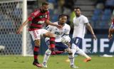 Pemain Flamengo Thiago Maia (Kiri) mengontrol bola pada pertandingan semifinal Piala Dunia Klub FIFA antara CR Flamengo dan Al Hilal SFC di Tangier, Maroko, Rabu (8/2/2023) dini hari WIB. (FOTO : EPA-EFE/Mohamed Messara)