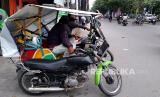 Becak motor (Bentor) membawa penumpang di Medan, Sumatera Utara, Rabu (8/2/2023). Bentor di Medan merupakan salah satu moda transportasi umum yang ikonik. Namun, kondisinya saat ini mulai mendapat persaingan dengan adanya ojek daring. Dengan adanya ojek daring, berimbas pada turunnya minat warga untuk menggunakan Bentor. (FOTO : Republika/Wihdan Hidayat)