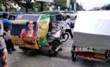 Becak motor (Bentor) melintas di jalanan Kota Medan, Sumatera Utara, Rabu (8/2/2023). Bentor di Medan merupakan salah satu moda transportasi umum yang ikonik. Namun, kondisinya saat ini mulai mendapat persaingan dengan adanya ojek daring. Dengan adanya ojek daring, berimbas pada turunnya minat warga untuk menggunakan Bentor. (FOTO : Republika/Wihdan Hidayat)