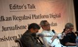 Pada diskusi ini membahas terkait regulasi platform digital untuk jurnalisme berkualitas serta ekosistem media yang sehat.