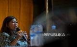 Ketua Komisi I DPR RI Meutya Hafid menjadi panelis saat Forum Pemred di sela peringatan HPN 2023, Medan , Sumatera Utara, Rabu (8/2/2023). (FOTO : Republika/Wihdan Hidayat)