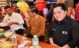 Presiden Jokowi bersama Menteri BUMN Erick Thohir (kanan) dan Walikota Medan Bobby Afif Nasution menyantap Durian di Restoran Sibolang Durian, Medan, Rabu (8/2/2023) malam. Dalam suasana santai tersebut, Presiden terlihat berbaur dan duduk bersama pemred yang hadir sambil menikmati durian bersama. (FOTO : Agus Suparto/Istana Kepresidenan)