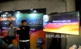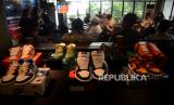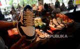 Jurnalis mengamati salah satu sepatu yang di tampilkan dalam konferensi pers pelaksanaan Jakarta Sneaker Day 2023, Jakarta, Kamis (9/2/2023). (FOTO : Republika/Prayogi.)