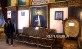 Pengunjung melihat daftar Sultan Deli yang berkuasa di Istana Maimun, Medan, Sumatera Utara, Kamis (9/2/2023). (FOTO : Republika/Wihdan Hidayat)