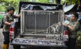REPUBLIKA.CO.ID, JAKARTA -- Petugas Jakarta Konservasi Animal Rescue mengevakuasi monyet ekor panjang (Macaca fascicularis) di kawasan Rawa Badak, Tanjung Priok, Jakarta, Kamis (9/2/2023).