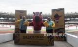 Menteri Pemuda dan Olahraga Zainudin Amali (kanan) bersama Ketua PSSI Mochamad Iriawan (kiri) berfoto bersama maskot Piala Dunia U-20 2023 Indonesia Bacuya dalam acara 100 Hari Menuju Piala Dunia U-20 Indonesia 2023 di Stadion Utama Gelora Bung Karno, Jakarta, Kamis (9/2/2023). (FOTO : ANTARA FOTO/Aprillio Akbar)