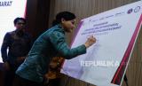 Kepala Eksekutif Pengawas Perilaku Pelaku Usaha Jasa Keuangan, Edukasi dan Pelindungan Konsumen OJK Friderica Widyasari Dewi menandatangani pencanangan literasi dan inklusi pasar modal kepada seribu guru di Kalimantan Barat di Universitas Tanjungpura, Pontianak, Kalimantan Barat, Kamis (9/2/2023). Otoritas Jasa Keuangan (OJK) bersama PT Bursa Efek Indonesia (BEI) dan sejumlah lembaga terkait meresmikan dua Galeri Investasi Universitas Tanjungpura dan Universitas Nahdlatul Ulama Pontianak, serta melakukan pencanangan literasi dan inklusi pasar modal kepada seribu guru di Kalimantan Barat. (FOTO : ANTARA FOTO/Jessica Helena Wuysang)