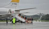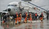 Tim SAR Gabungan menaiki pesawat boeing 747 TNI AU untuk mengikuti misi kemanusiaan ke Turki di Lanud Halim Perdanakusuma, Jakarta, Sabtu (11/2/2023). Pemerintah Indonesia mengirimkan bantuan logistik untuk korban gempa Turki sebanyak lima ton serta mengirimkan personel gabungan tim pencarian dan penyelamatan (SAR) sebanyak 65 orang untuk membantu proses evakuasi. (FOTO : Republika/Thoudy Badai)