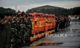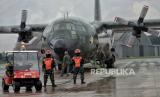 Prajurit TNI AU bersiap mengikuti misi kemanusiaan ke Turki di Lanud Halim Perdanakusuma, Jakarta, Sabtu (11/2/2023). Pemerintah Indonesia mengirimkan bantuan logistik untuk korban gempa Turki sebanyak lima ton serta mengirimkan personel gabungan tim pencarian dan penyelamatan (SAR) sebanyak 65 orang untuk membantu proses evakuasi. (FOTO : Republika/Thoudy Badai)
