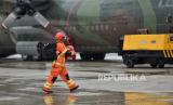 Tim SAR Gabungan bersiap menaiki pesawat boeing 747 TNI AU untuk mengikuti misi kemanusiaan ke Turki di Lanud Halim Perdanakusuma, Jakarta, Sabtu (11/2/2023). Pemerintah Indonesia mengirimkan bantuan logistik untuk korban gempa Turki sebanyak lima ton serta mengirimkan personel gabungan tim pencarian dan penyelamatan (SAR) sebanyak 65 orang untuk membantu proses evakuasi. (FOTO : Republika/Thoudy Badai)