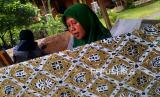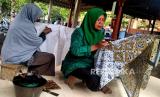 Warga membatik di Kampung Batik Giriloyo, Bantul , Yogyakarta, Sabtu (11/2/2023). Kampung Batik Giriloyo menjadi salah satu rujukan wisata edukasi membatik. Di sini wisatawan bisa mencoba membatik dan belajar memroses kain hingga nanti menjadi kain batik. Setiap akhir pekan ratusan wisatawan mengunjungi Giriloyo untuk belajar membatik. Tarif belajar membatik di Giriloyo mulai dari Rp 25 ribu per orang. (FOTO : Republika/Wihdan Hidayat)