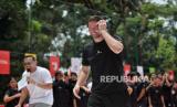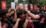Mantan kiper Borussia Dortmund Roman Weidenfeller menyapa anak-anak saat meresmikan lapangan bola Bundesliga Common Ground di RPTRA Bhinneka, Pesanggrahan, Jakarta, Sabtu (11/2/2023). Program Common Ground tersebut merupakan program renovasi dan revitalitasi lapangan sepak bola dengan harapan dapat menjadi sarana sepak bola yang layak untuk perkembangan sepak bola di Tanah Air. Program Common Ground tersebut digelar di seluruh dunia, selain di Jakarta, terdapat tujuh lalangan yang telah direnovasi yakni lapangan bola di Lagos (Nigeria), Mexico City (Meksiko), Rio de Janeiro (Brasil), Buenos Aires (Argentina), New York (AS) dan Berlin (Jerman). Total akan ada delapan negara yang memiliki Bundesliga Common Ground. (FOTO : Republika/Thoudy Badai)