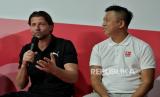 Mantan kiper Borussia Dortmund Roman Weidenfeller (kiri) bersama Head Of APAC Kevin Sim (kanan) saat sesi konferensi pers dalam acara peresmian lapangan bola Bundesliga Common Ground di RPTRA Bhinneka, Pesanggrahan, Jakarta, Sabtu (11/2/2023). Program Common Ground tersebut merupakan program renovasi dan revitalitasi lapangan sepak bola dengan harapan dapat menjadi sarana sepak bola yang layak untuk perkembangan sepak bola di Tanah Air. Program Common Ground tersebut digelar di seluruh dunia, selain di Jakarta, terdapat tujuh lalangan yang telah direnovasi yakni lapangan bola di Lagos (Nigeria), Mexico City (Meksiko), Rio de Janeiro (Brasil), Buenos Aires (Argentina), New York (AS) dan Berlin (Jerman). Total akan ada delapan negara yang memiliki Bundesliga Common Ground. (FOTO : Republika/Thoudy Badai)