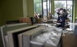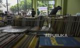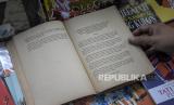 Warga melihat buku yang dipajang pada gelaran Haus Buku 3 di Gedung Perpustakaan Ajip Rosidi, Jalan Garut, Batununggal, Kota Bandung, Provinsi Jawa Barat, Ahad (12/2/2023). Gelaran Haus Buku 3 tersebut menampilkan arsip surat dan buku klasik serta ratusan buku dari sembilan pelapak buku. Gelaran tersebut bertujuan untuk mengenalkan Gedung Perpustakaan Ajip Rosidi sekaligus upaya untuk meningkatkan minat baca masyarakat. (FOTO : ABDAN SYAKURA/REPUBLIKA)