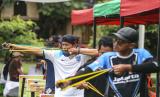 REPUBLIKA.CO.ID,DEPOK -- Peserta membidik target saat mengikuti Liga Ketapel Indonesia Bersatu The Community Shield Slingshot Competition di Sawangan, Depok, Jawa Barat, Minggu (12/2/2023).