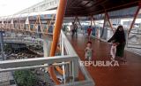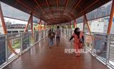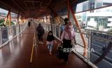 Sejumlah warga melintasi skywalk Kebayoran, Jakarta Selatan, Selasa (7/2/2023). (FOTO : Republika/Eva Rianti)