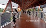 REPUBLIKA.CO.ID,JAKARTA -- Warga berjalan di Skywalk Kebayoran Lama, Jakarta, Ahad (12/2/2023).