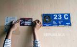 Petugas Pemutakhiran Data Pemilih (PANTARLIH) KPU Kota Bitar menempelkan stiker di rumah warga sebagai tanda sudah terdata saat melakukan pencocokan dan penelitian (COKLIT) data pemilih untuk Pemilu 2024 di Kota Blitar, Jawa Timur, Senin (13/2/2023). Pencocokan data pemilih yang dimulai 12 Februari hingga 14 Maret 2023 dan dilakukan secara serentak di seluruh indonesia tersebut bertujuan untuk mencocokkan secara detail data pemilih yang ada di KPU dengan data pemilih asli di lapangan guna mengantisipasi ketidaksesuaian data agar pelaksanaan Pemilu 2024 dapat berjalan sesuai dengan amanah undang-undang. (FOTO : ANTARA FOTO/Irfan Anshori)